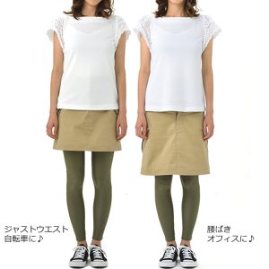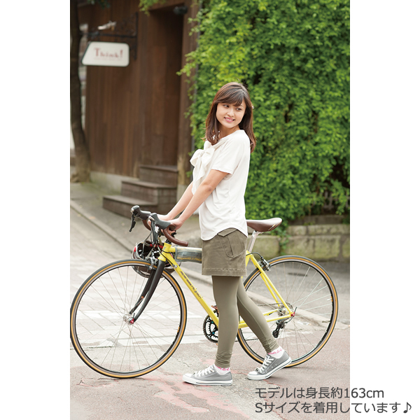 TPO に合わせた自分らしいスタイルで自転車を楽しみたいもの。ウエストをゴムにすることでお腹の圧迫を少なく、履く位置でスカートの長さを調整することができオフィスにもマッチ。ハイテンションストレッチ素材でペダリングを快適にしました。