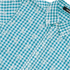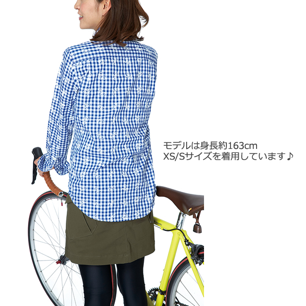 綿100%の普通のシャツと思いきや、自転車刺繍が全体に施されているという驚きと 大好きな自転車に包まれる幸せ♥